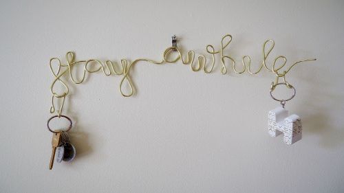 Tired of misplacing your keys? Create this fun spot to hang your keys as soon as you walk in the door! It would also make a great gift for a friend. All you need is pliable wire, a wire cutter/pliers, and a stencil.